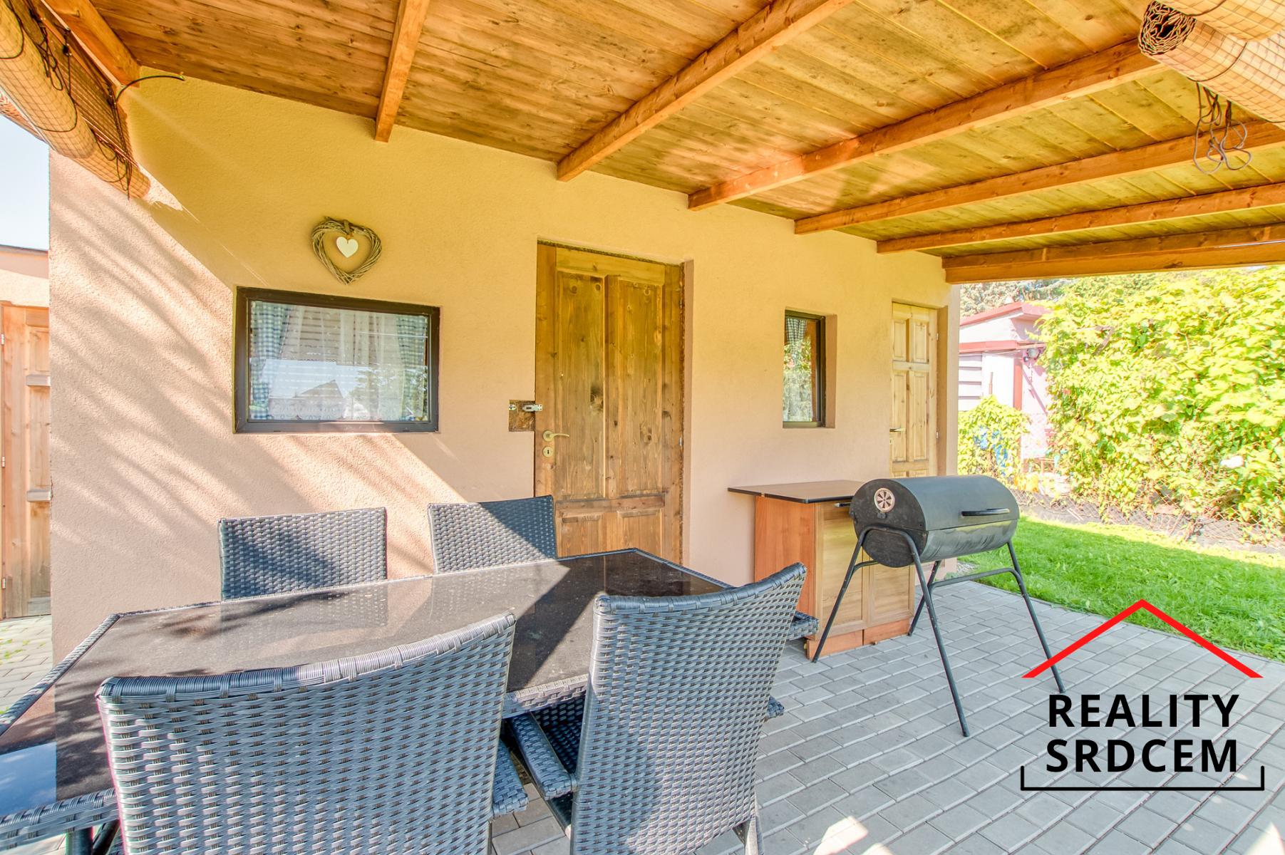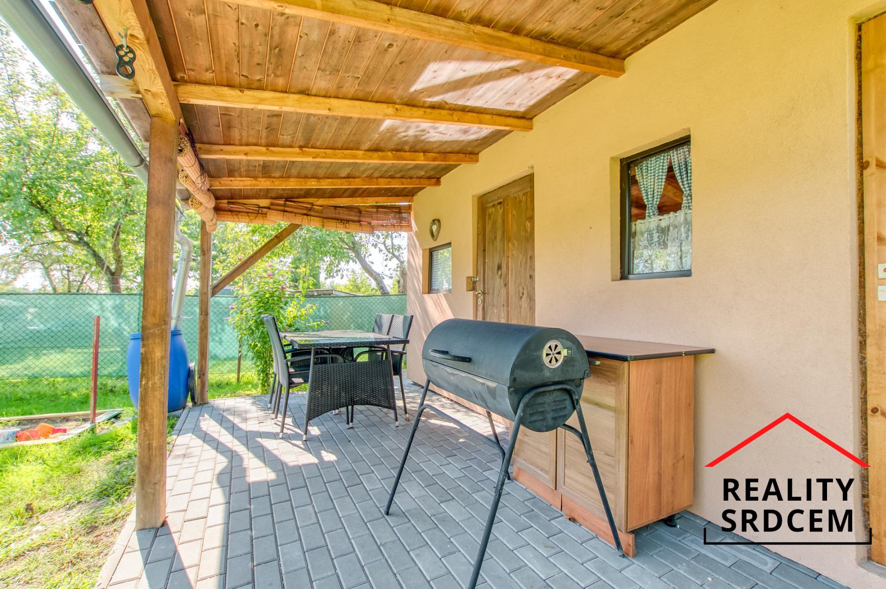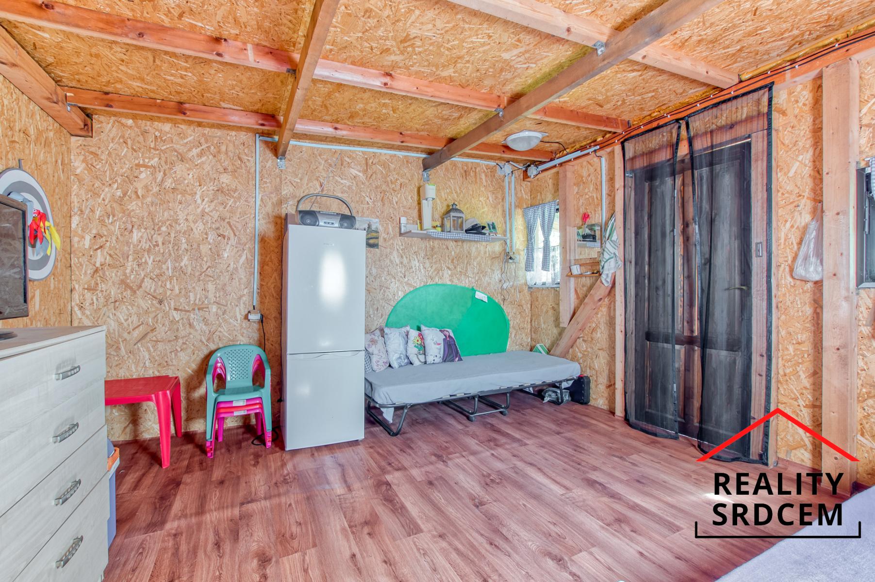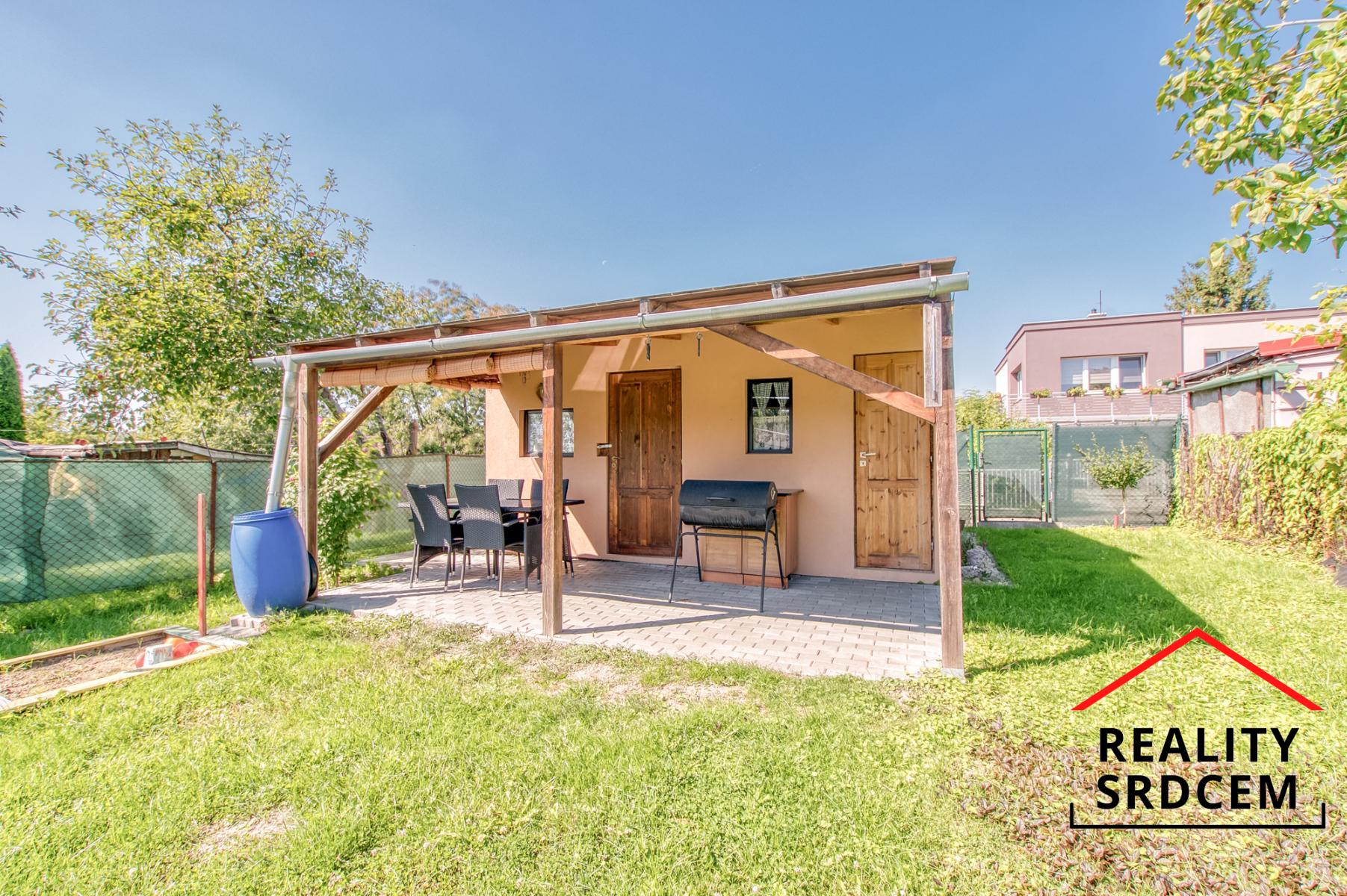 Na zahradě byla v roce 2021 nově postavená chata - dřevostavba zateplená polystyrénem rozdělená na obytnou část, kůlnu a místnost s chemickým WC. Zahrada je připojená na elektřinu i vodu (pitnou i užitkovou) a internet. Chata má vybudovanou prodlouženou terasu po celé šířce chaty, takže se tady dá krásně posedět po práci i o víkendu.