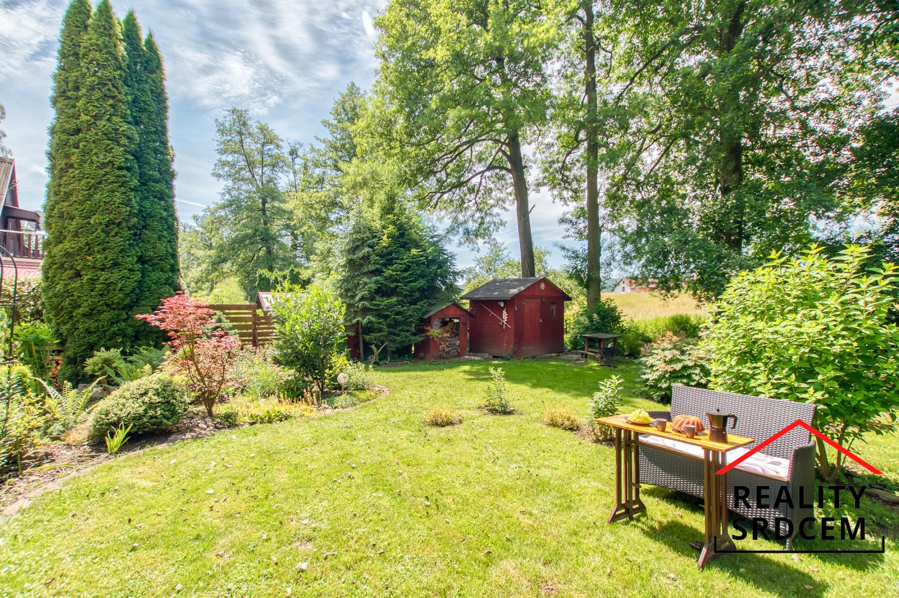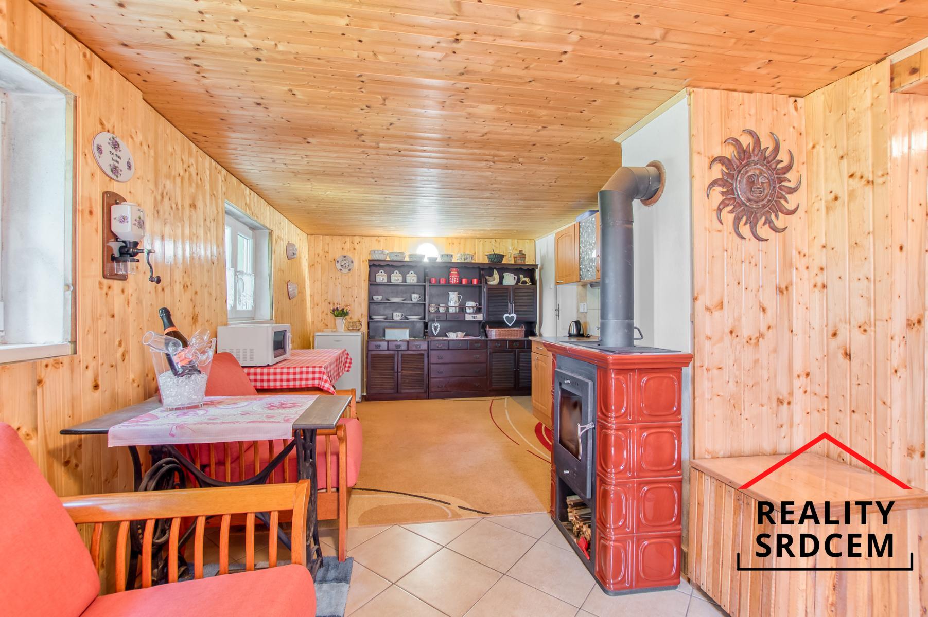 Chata prošla opravami a nabídne Vám příjemný stav, který můžete využít nejen přes chatovou sezónu, ale díky krbovým kamnům i na sychravější podzim nebo začínající jarní období. Je zde elektřina i voda ze studny. Na zahradě příjemně šumí potůček a zpívající ptáci. Uvnitř chaty je v suterénu udělaná kuchyň, vnitřní posezení u kamen, koupelna, technická místnost s čerpadlem i bojlerem, ale také schodiště do patra, kde je ložnice, prostorný obývací pokoj s balkónem do zahrady a samostatné WC.
