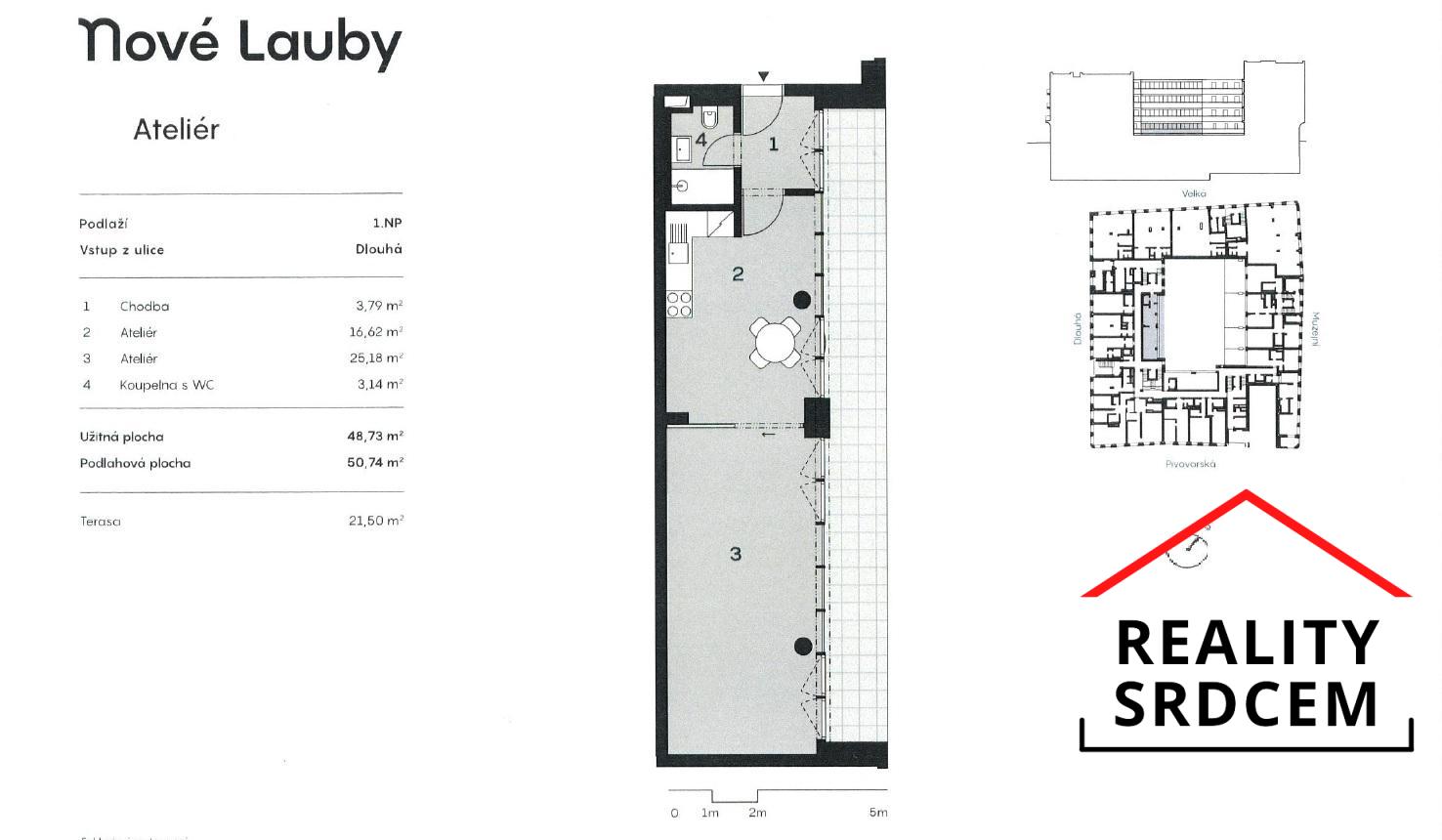 Nabízíme komerční prostor v prestižní novostavbě rezidence Nové Lauby přímo v srdci Ostravy. Jedná se o moderní ateliér o celkové ploše 49 m2, který se nachází v přízemí budovy a disponuje vlastní terasou o velikosti 22 m2. Díky strategickému umístění se vstupem z ulice Dlouhé a bezprostřední blízkosti Masarykova náměstí získáte prestižní adresu pro své podnikání.