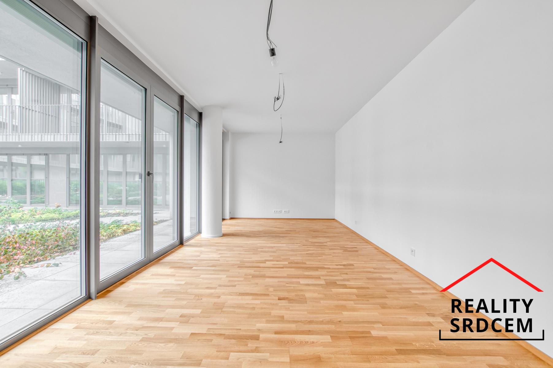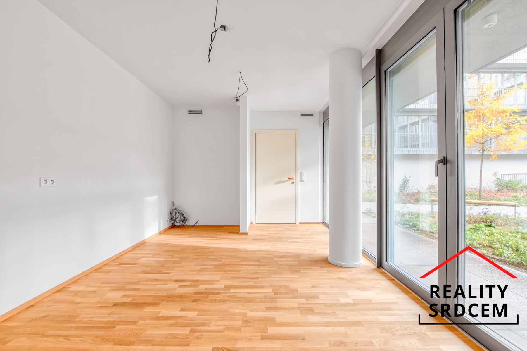 Prostor tvoří dvě prosklené a světlé místnosti, které nabízí flexibilní možnosti využití. Je zde vstupní chodbička, samostatná koupelna vybavená moderním sprchovým koutem a toaletou. V první místnosti je možnost instalace kuchyňské linky a využitelná plocha je 16,6 m2, druhá místnost je větší o ploše 25,2 m2.