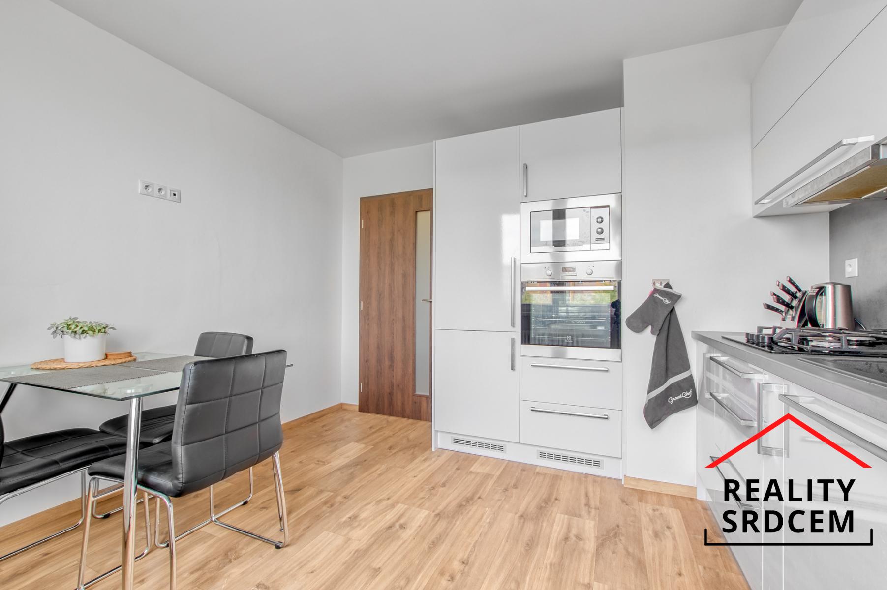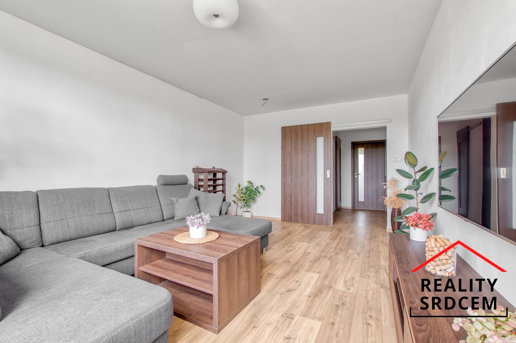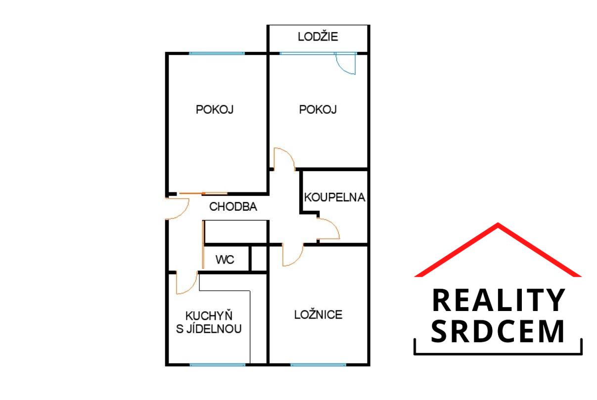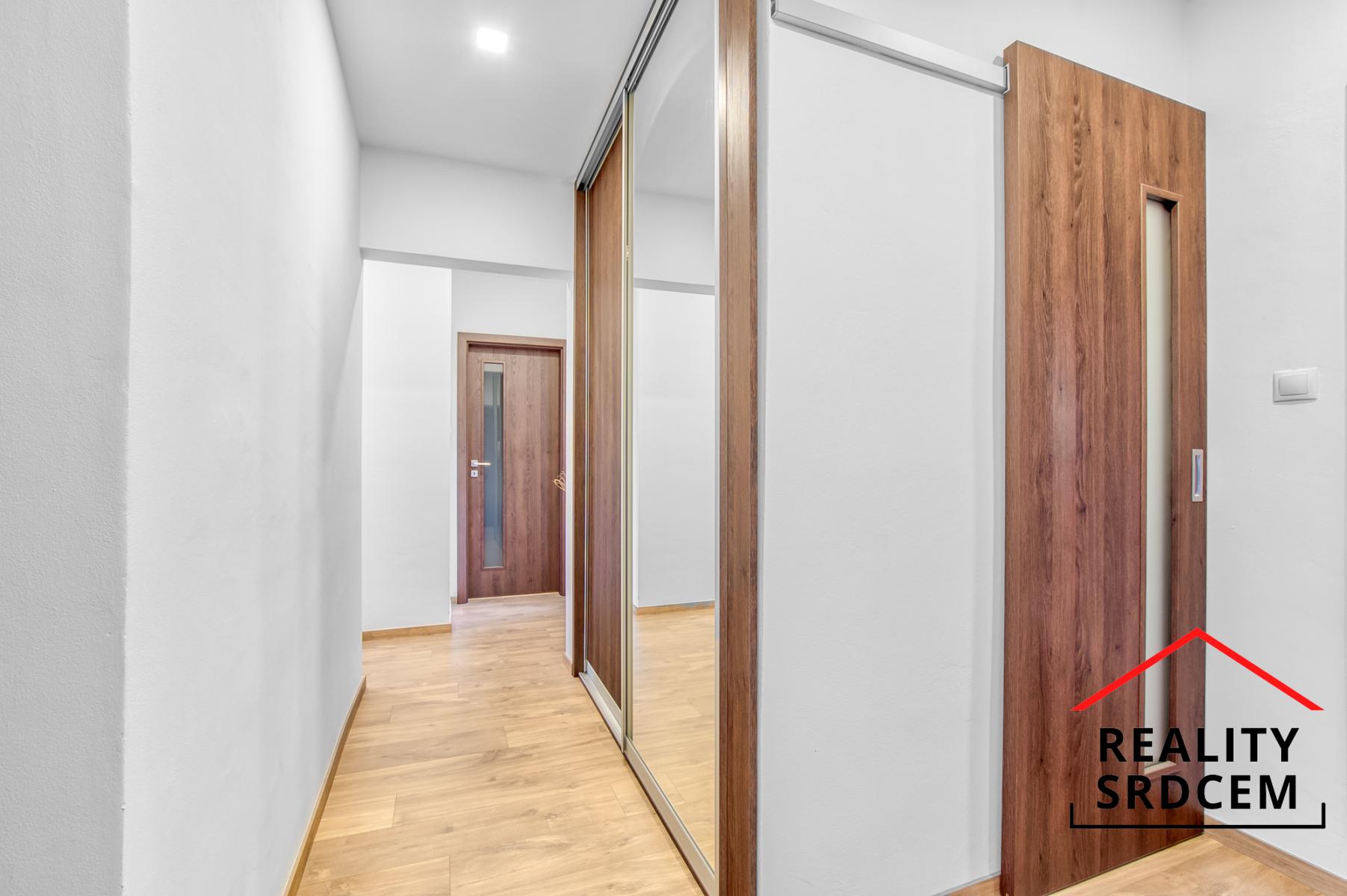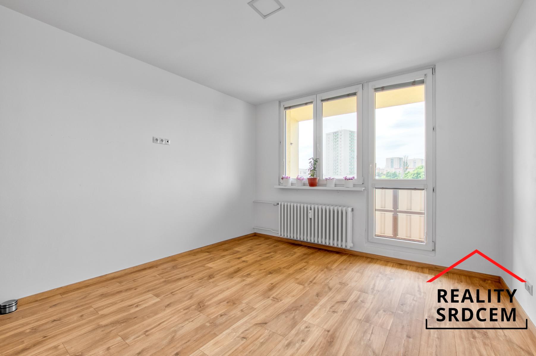 Byt má prostornou vstupní chodbu s vestavěnou šatní skříní a vestavěným botníkem. Kuchyň je velká čtvercová vč. jídelní části. Obývací pokoj je vzdušný umístěn naproti kuchyně. Dále jsou zde dva samostatné pokoje, jeden s lodžií a mezi nimi se nachází koupelna kde je vana i sprcha, vešla se pračka i větší umyvadlo a je místo i na sušičku. WC je samostatně. Byt je nezařízen, vyjma vestavěných skříní a pračka. Obývací pokoj a pokoj s lodžií je na jihozápad, ložnice s kuchyní na severovýchod.