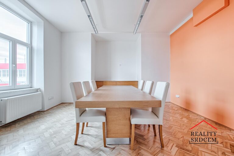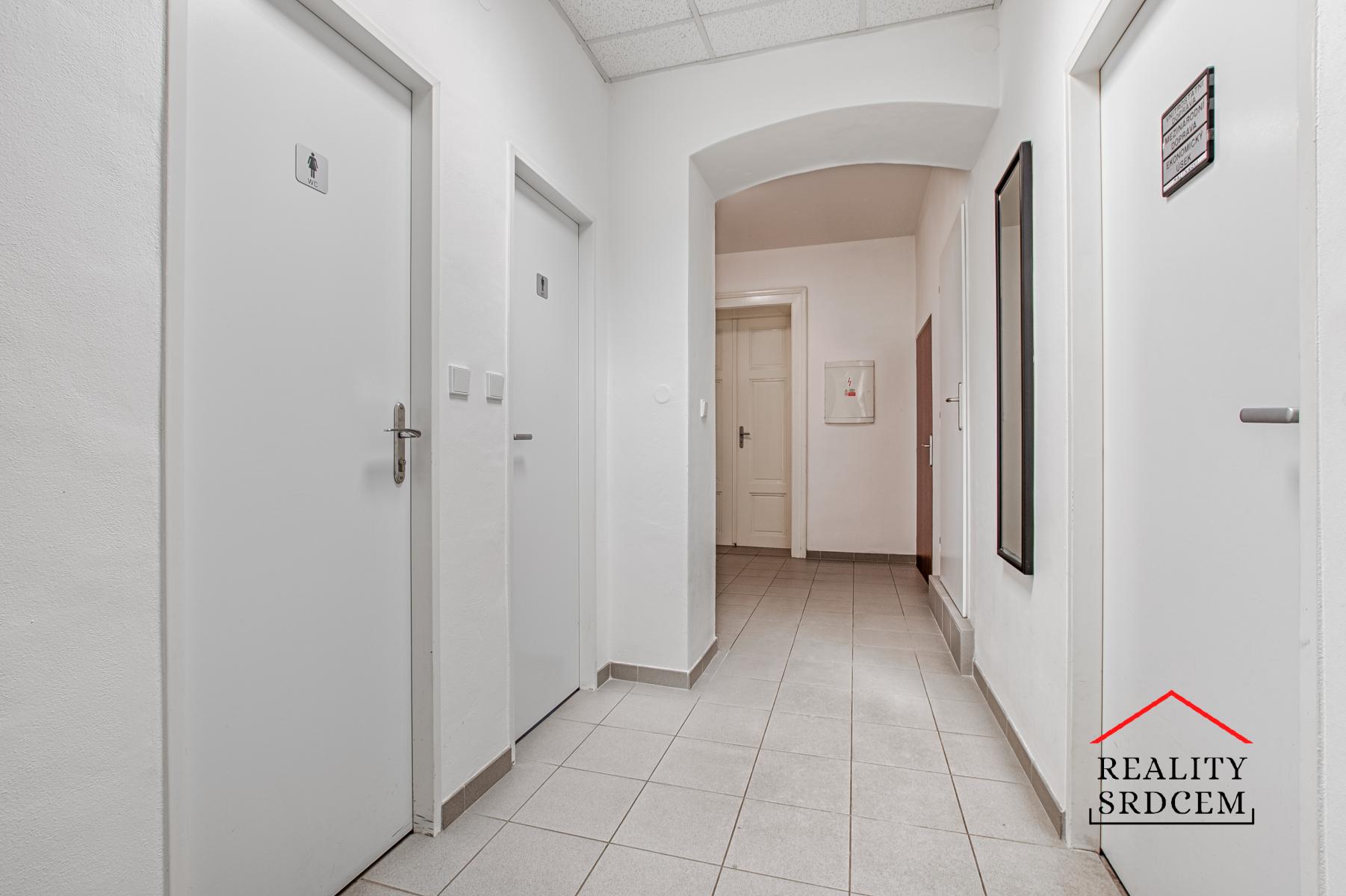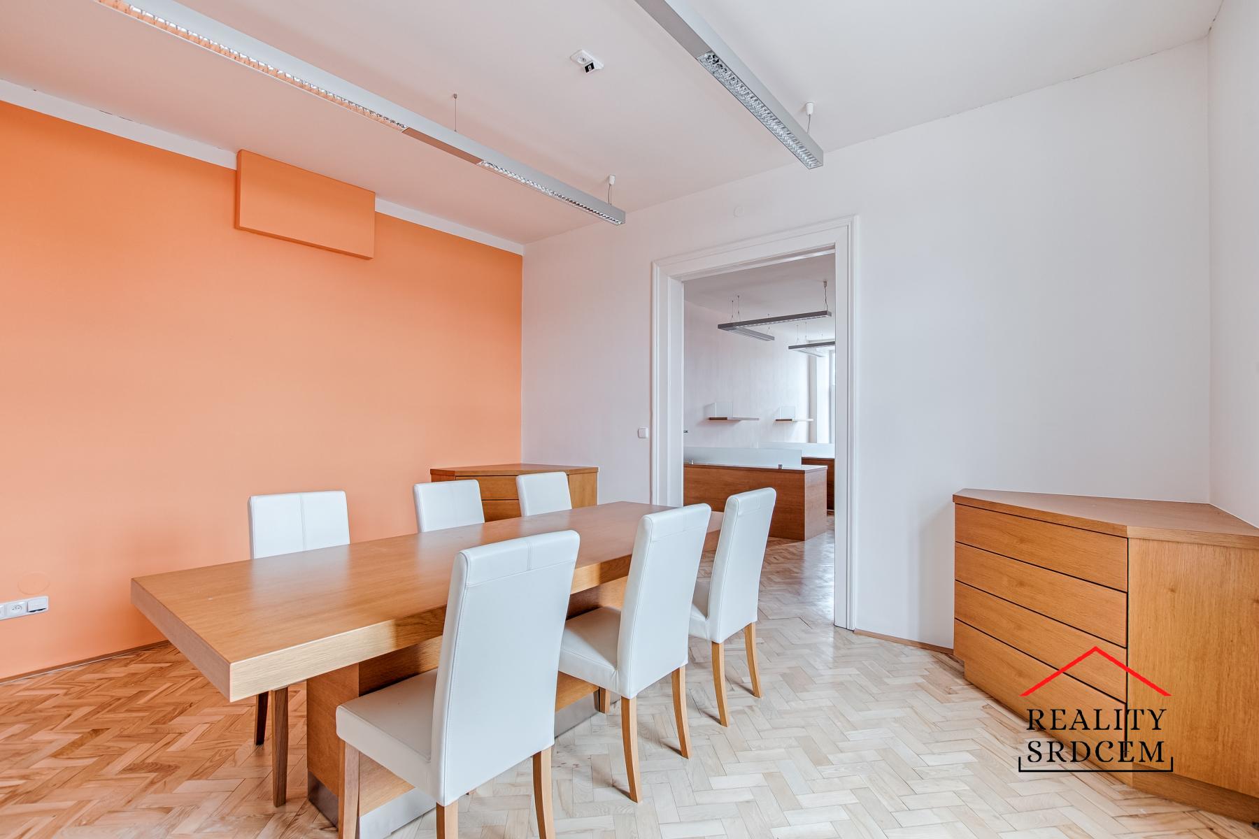 Ke kancelářím je vstup ze samostatného schodiště, je zde prostorná vstupní chodba, jsou další tři kanceláře, jedna společně se zasadací místností, odělené sociální zázemí, sprcha, menší kuchyňka a vstup na půdu s terasou. Patro je vytápěné vlastním plynovým kotlem s centrálním rozvodem a je zde moderní kancelářské vybavení. Celé patro vy vymalováno na bílo.