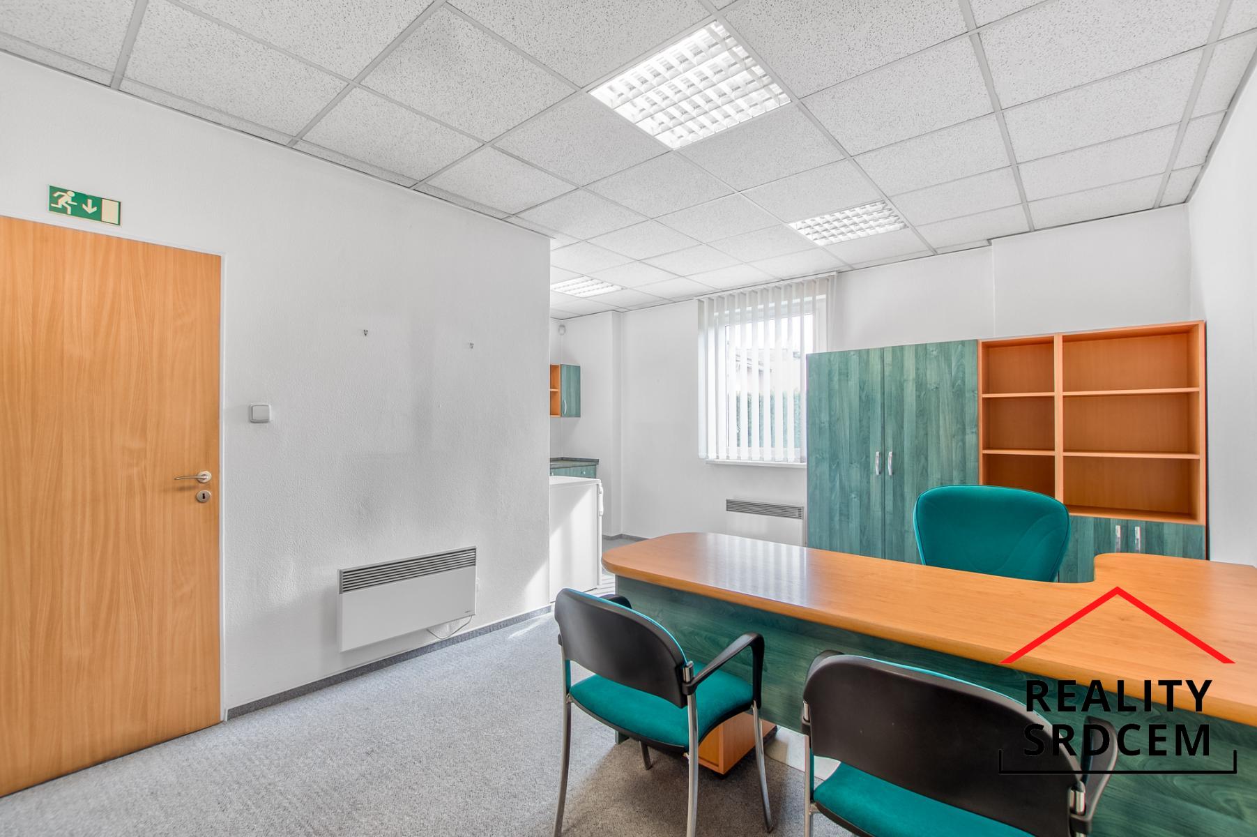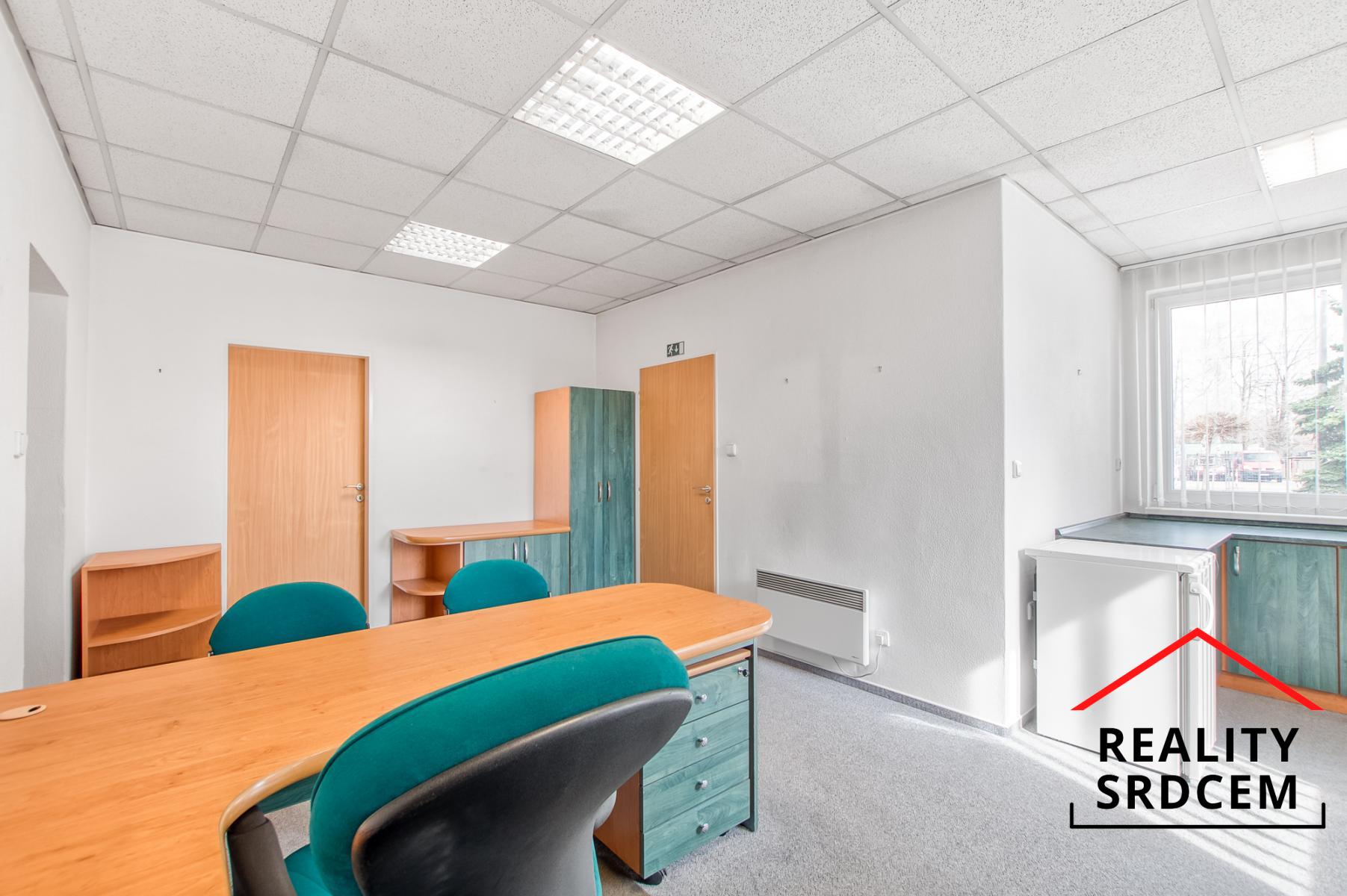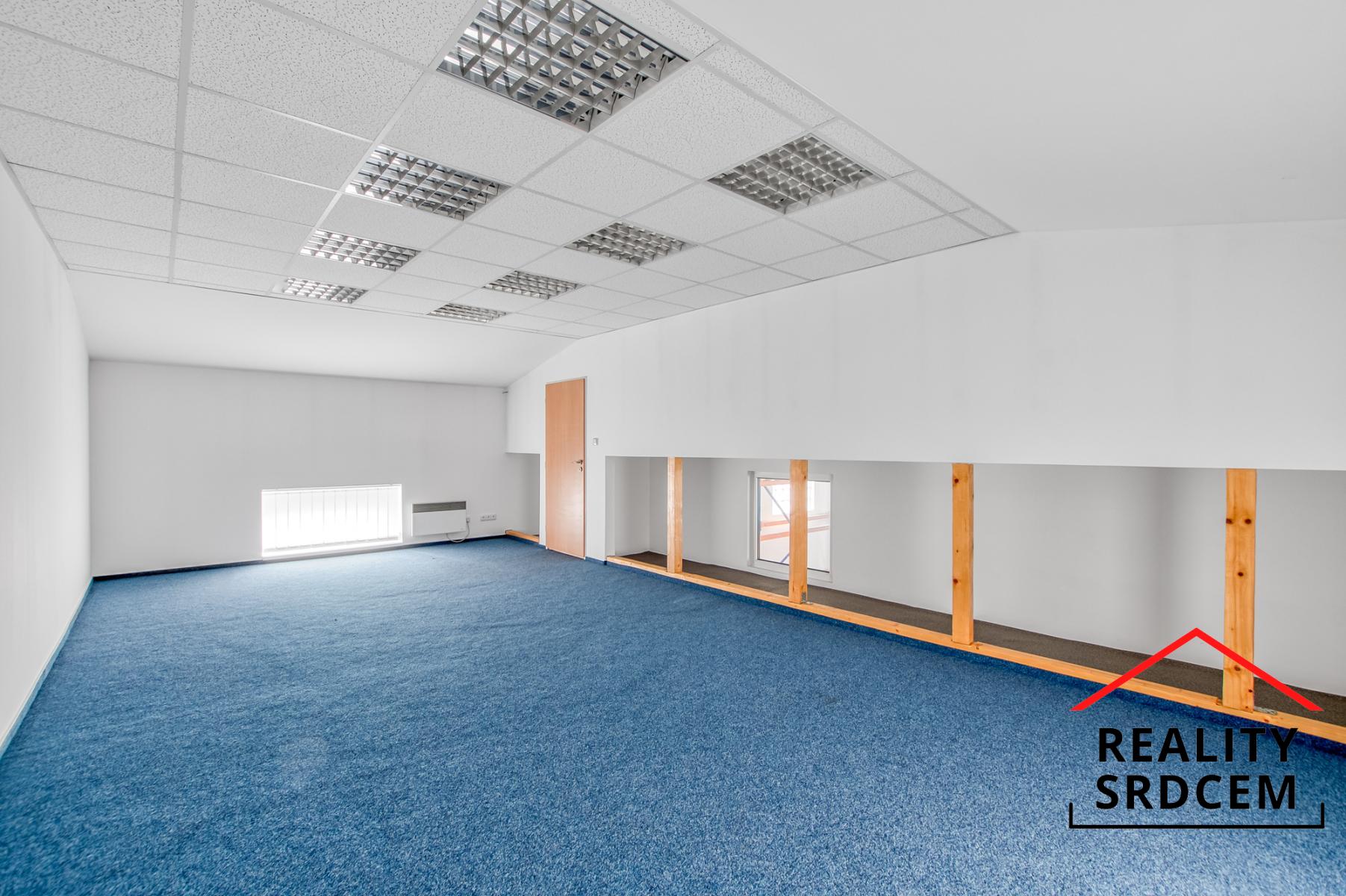 Kancelář s kuchyňkou v přízemí má cca 23 m2, zasedačka 17 m2, kancelář ve 2Np 34 m2 + úložné boxy. Do haly jsou sekční vjezdová vrata o šířce 3,5 m a výšce 3,5 m. Jedná se o zabezpečený objekt z vlastním pozemkem o ploše 988 m2 a s bránou na elektrické ovládání s možností přístupu pro kamion.