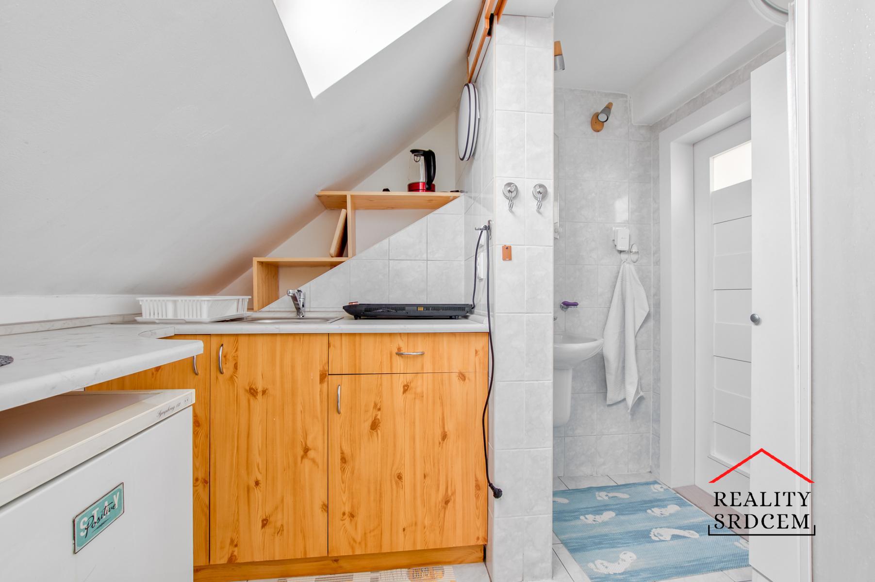 Kuchyňský koutek vznikl rozšířením půdního prostoru. V kuchyňce je lednička, mikrovlnka, elektrická trouba s vařičem a indukční dvouplotýnkový vařič včetně indukčního nádobí a pračka na 3,5 kg prádla. Ohřev teplé vody je zajištěn programovatelným elektrickým boilerem v kuchyňce. V obou pokojích jsou udělány podhledy ze sádrokartonu a v prvním pokoji je odhlučněna zeď směrem k sousedům. Byt je po celkové rekonstrukci v roce 2021 - v celém bytě jsou nově položené vinylové podlahy, nové dveře se zárubněmi, nové omítky na stěnách a nainstalována úsporná stropní LED svítidla.