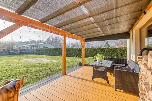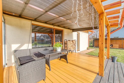 Pozemek má 1.069 m2 - dostatek místa pro bazén nebo vířivku. Kdo rád pěstuje ocení vyvýšené záhony, pokud máte psa je velký kotec a kutilové využijí zahradní domek. Rovinatý pozemek navíc nabízí příjemnou atmosféru zapadajícího slunce a přitom soukromí díky živému plotu. Dům má nízké náklady což se dnes opravdu hodí a novému majiteli nabídne dostatečný prostor pro celou rodinu.