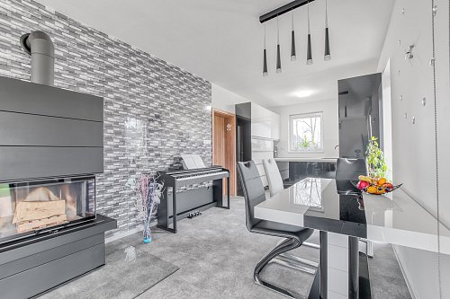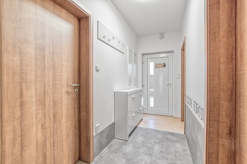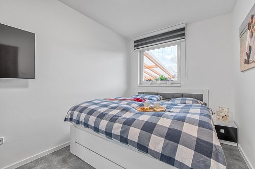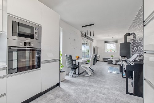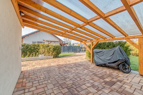 Před domem je kryté stání pro Váš vůz i motorku. U vstupu se nachází technická místnost s podlahovým vytápění, bojlerem na ohřev vody a elektrickým kotlem. Dům Vám nabídne na své ploše 67 m2 3 pokoje. Jeden, který je doslova srdcem domu. Obývací pokoj propojený s jídelní částí a kuchyní na míru včetně vestavěných spotřebičů. V tomto srdci si zapálíte moderní krb když budete chtít příjemnou atmosféru a ranní kávu nebo večerní grilovačku si užijete na zastřešené terase. Dětský pokoj a ložnice jsou menší, oddělené. Dále zde máme koupelnu s vanou a toaletou a pokud potřebujete úložný prostor najdete jej na půdě.