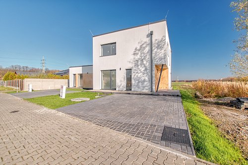 V tom případě mám pro Vás čertvě zkolaudovanou novostavbu rodinného domu v obci Koblov poblíž Ostravy. Jedná se o zděný dům - pravá část se samostatným č.p. Dispozičně se jedná o moderní patrový dům s dispozicí 5+kk o velikosti 155 m2 + závětří a terasa. Dům stojí na rohovém pozemku, na konci slepé ulice, o velikosti 449 m2, který nabízí plnohodnotné soukromí.